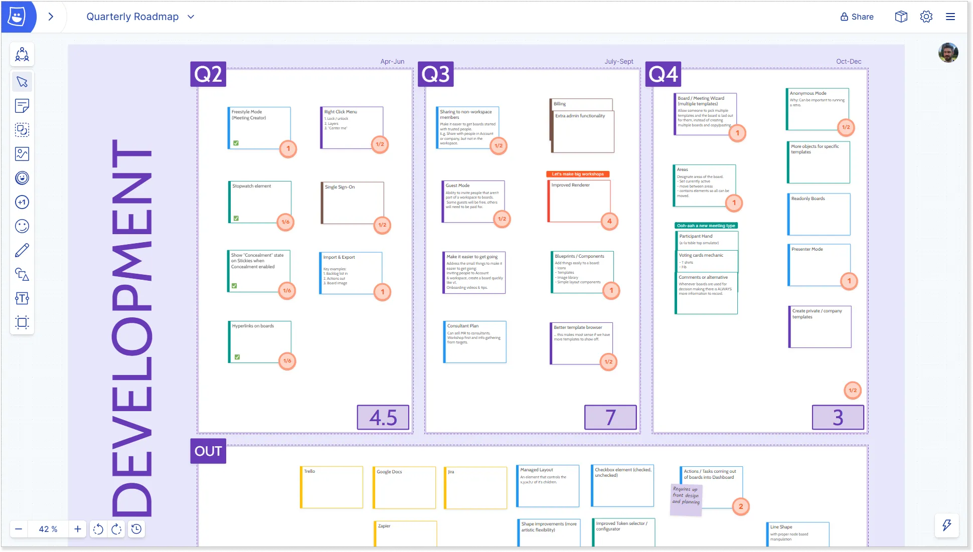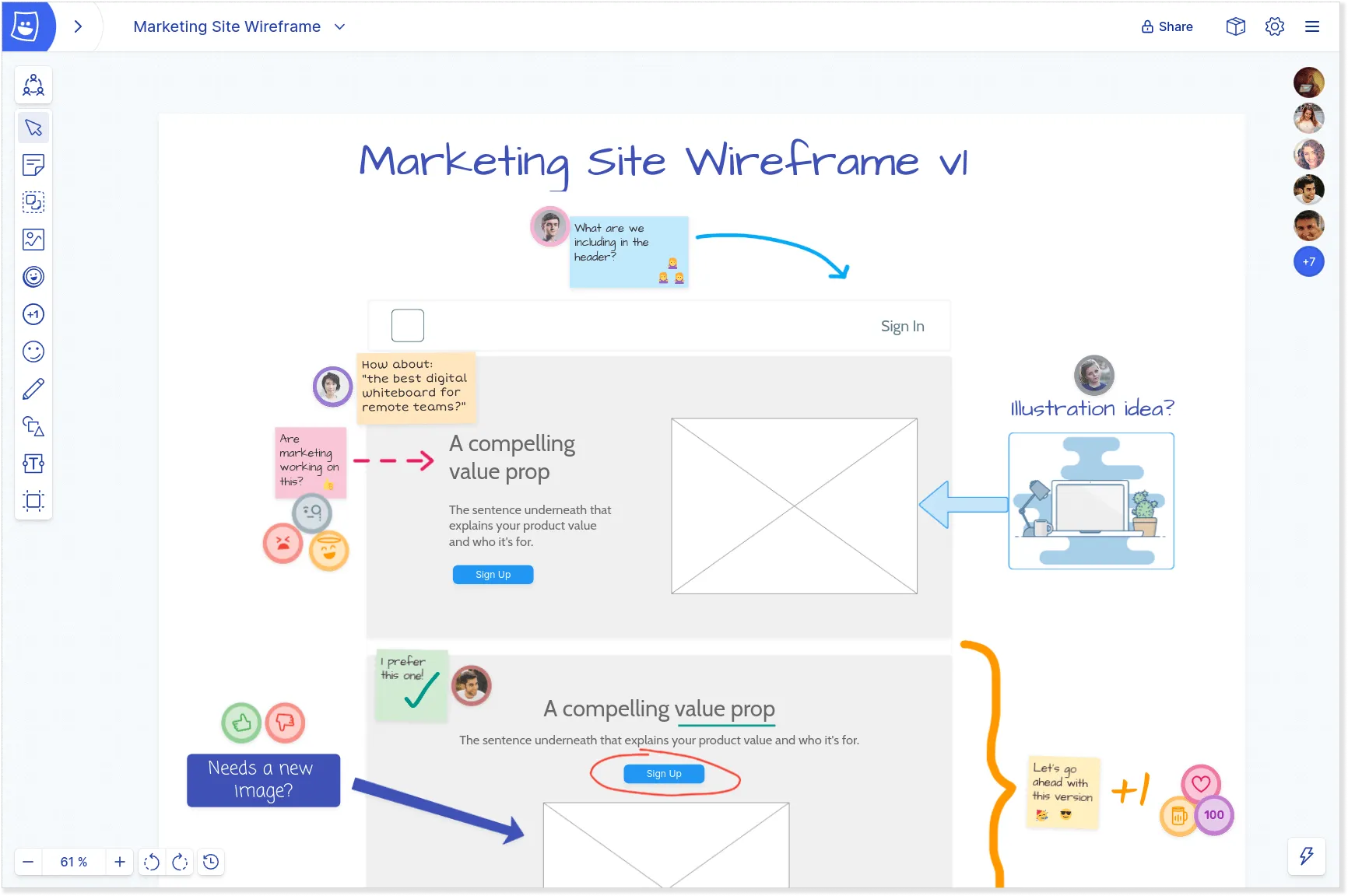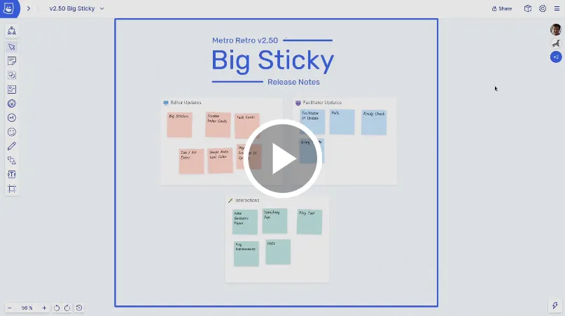 Use the shapes, graffiti pen, images and emojis when you need a creative outlet, and present your ideas to the group with the new vanishing pen and pointer arrows. Also note the big stickies, a highly-requested item!