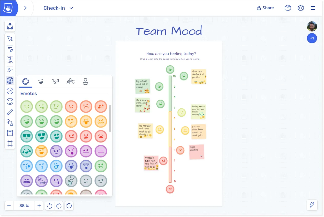 If your team already love working in Ludi there are new object types for more occasions, such as using tokens to run a team mood check-in:
