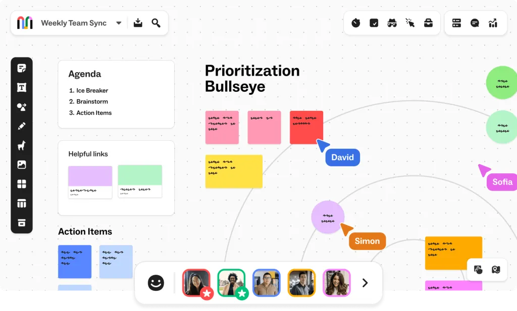 ✅ Strengths: Miro is known for its versatility as a tool and numerous integrations, such as with other tools like Slack and Google Drive. It supports real-time collaboration and is suitable for both brainstorming and project management.