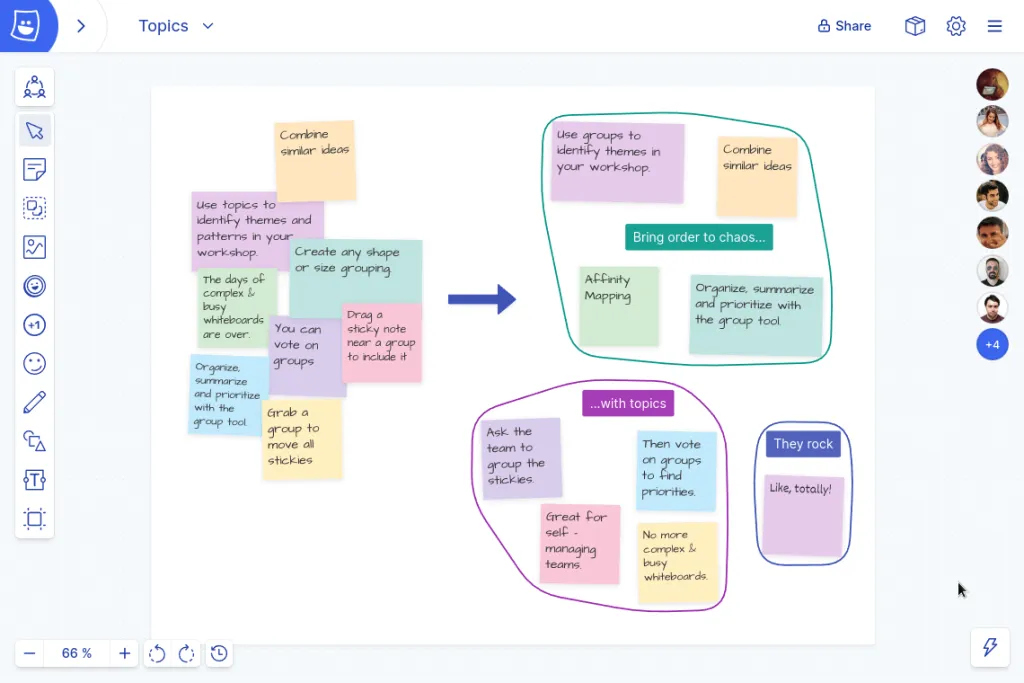 Example: grouping stickies into themes with the Topic Tool