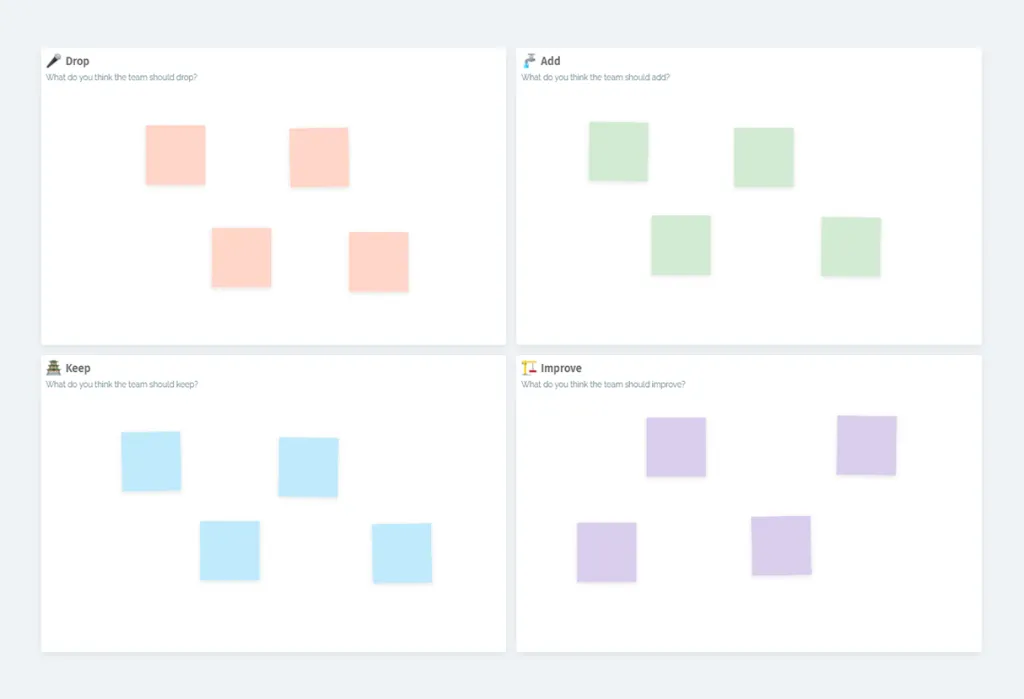 The Drop, Add, Keep, Improve retrospective format helps a team reflect on the last quarter