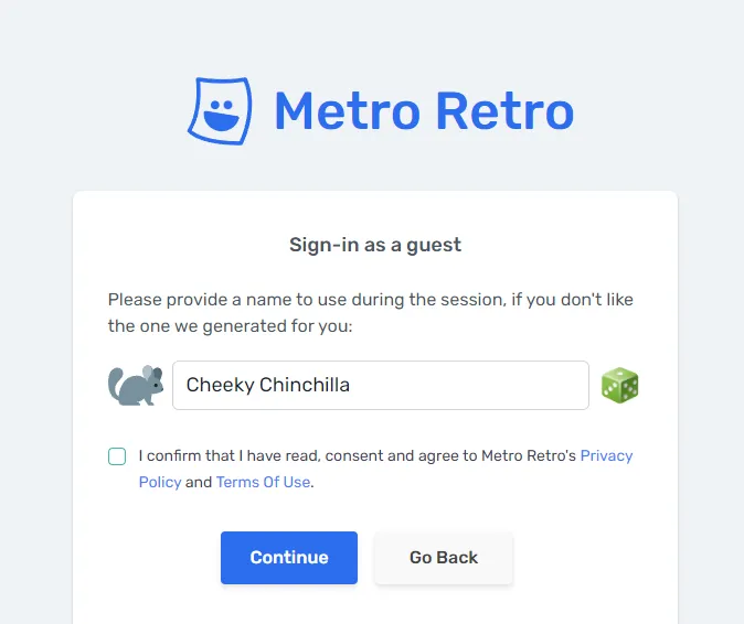 Guests do not need to login or create an account. They just provide their name and choose one of the randomized animal avatars, then ask for permission to access the board.